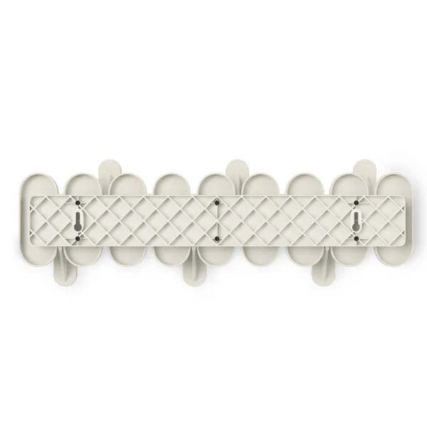 Der Tempo 6 Garderobenhaken vereint modernen Stil und alltägliche Funktionen in einem schlanken, an der Wand montierten Design. Die sechs versetzten Haken maximieren den Platz zum Aufhängen und sorgen gleichzeitig für einen auffälligen, grafischen Look an Ihrer Wand. Tempo besteht aus strapazierfähigem, leichtem Recyclingkunststoff, gemischt mit recycelten Holzfasern, und verleiht eine subtile natürliche Textur, die zu vielen verschiedenen Räumen passt – von Eingangsbereichen und Schlafzimmern bis hin zu Badezimmern und Büros. Jeder Haken hält bis zu 2,3 kg (insgesamt 13,6 kg) und ist somit perfekt für Mäntel, Taschen, Handtücher und mehr. Maße: 47 x 16 x 7 cm.