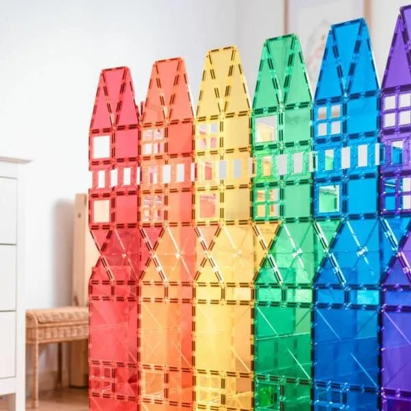 Watch ideas and designs come to life as children build rainbow coloured creations such as the classic Connetix rainbow, incredibly tall walls and towers, castles and houses, theme parks, robots, creatures, farm trucks and firetrucks, trains and train tracks – the possibilities really are limited only by your imagination with this pack!