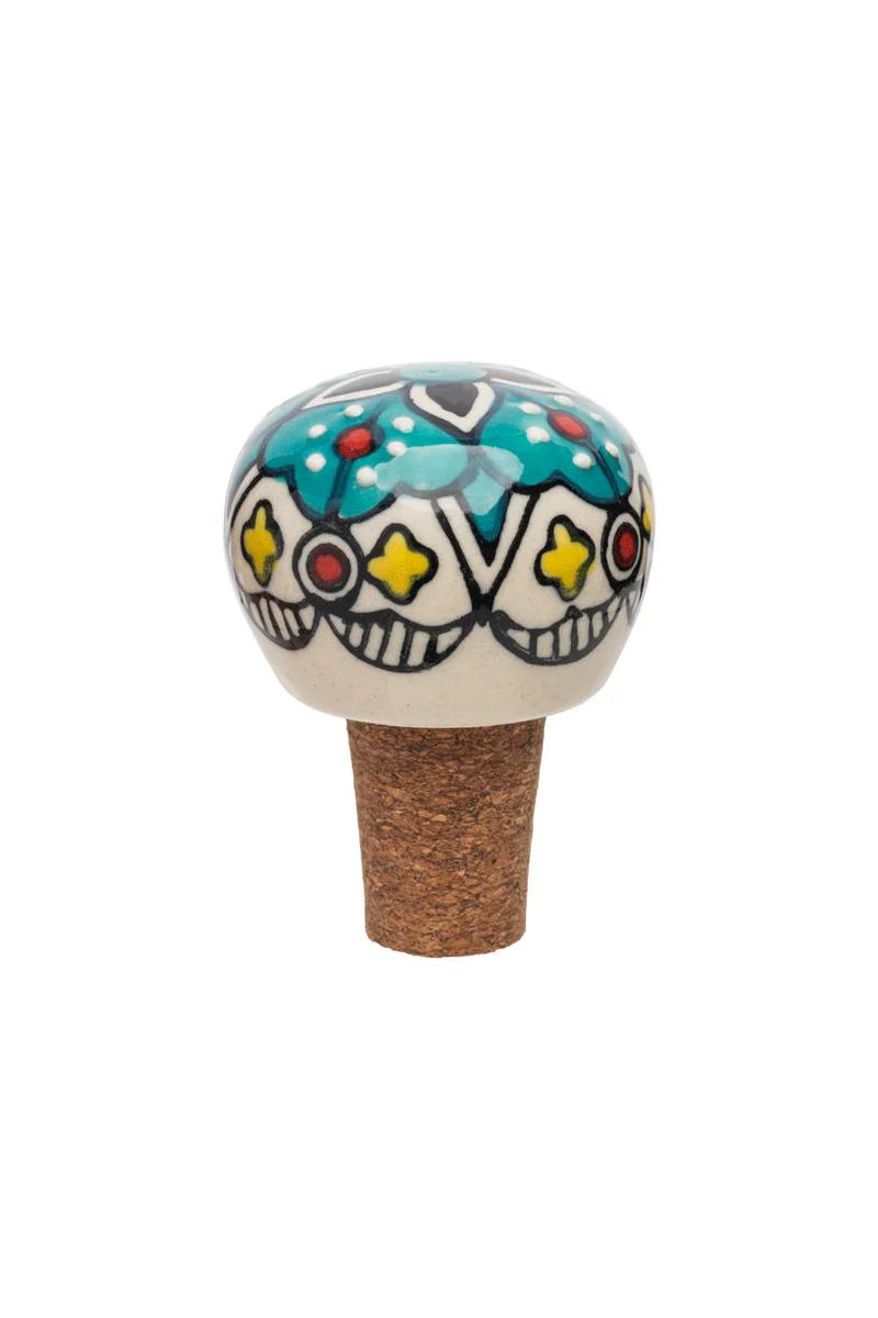 The ceramic and cork bottle stopper is an elegant and sustainable solution for closing bottles securely. The ceramic top impresses with its smooth, high-quality finish, is durable, easy to clean and absolutely food-safe. The lower part made of natural cork ensures a secure fit in the bottle and reliably protects the freshness of liquids. The floral pattern of the cap, decorated with fine details and harmonious colours, gives it a unique and appealing look. All materials are non-toxic and food-safe, making the closure both beautiful and practical. Whether for wine, oil or vinegar - this bottle stopper is a stylish accessory that combines function and aesthetics. It is also an ideal gift for people who appreciate environmentally friendly products with a touch of elegance.