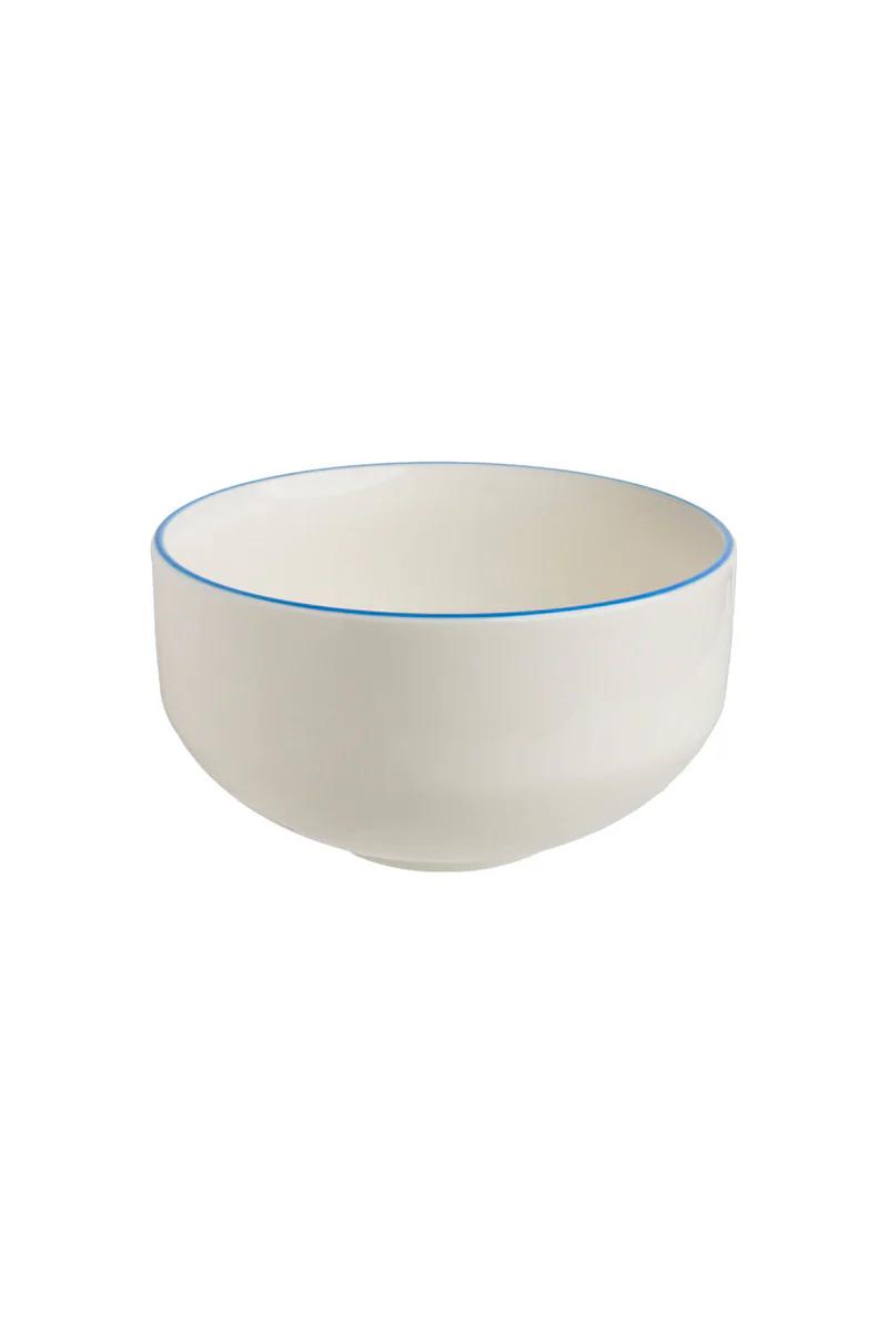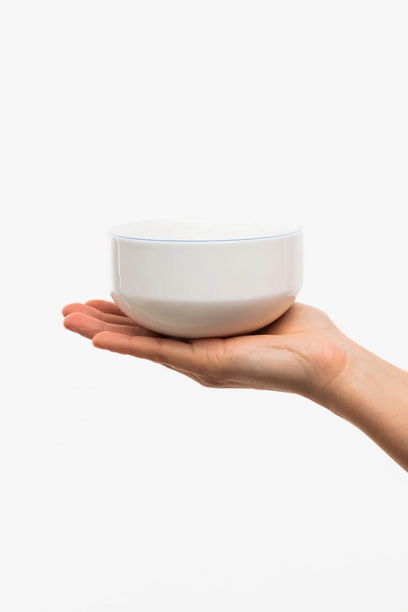 Our bowl with a subtle light blue rim and purist design combines timeless elegance with modern simplicity. Made from high-quality porcelain, it impresses with its smooth surface and clear, unobtrusive shape, which fits perfectly into minimalist table concepts. The fine light blue stripe that adorns the upper edge of the bowl gives it a subtle colour accent and harmonises perfectly with the white interior and exterior. Its versatile size makes it ideal for muesli, soups, desserts or snacks. With its simple yet stylish aesthetic, the bowl blends effortlessly into modern table arrangements and is also a practical everyday companion. Complete your style with our favourite pieces from the TINTED GRACE range.