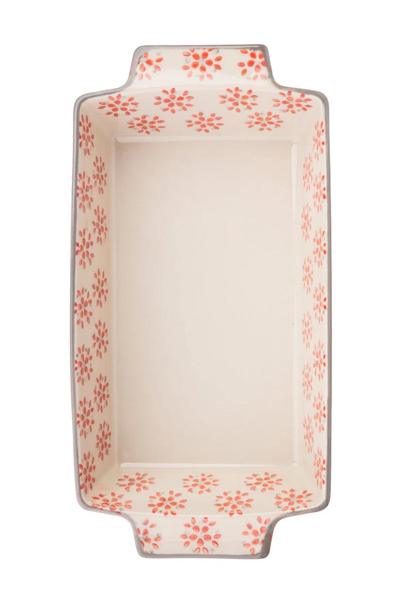 This small stoneware cake tin will delight you with its retro design and hand-stamped floral patterns that are reminiscent of times gone by. The vibrant prints give the tin a nostalgic charm and make it a real highlight in your kitchen. The high-quality stoneware ensures even heat distribution so that your small cakes always turn out perfectly. The glazed surface protects the mould and makes cleaning easier. With its unique retro flair, this cake tin is not only functional, but also a beautiful decorative piece that sets nostalgic accents and adds a touch of vintage style to your baking.